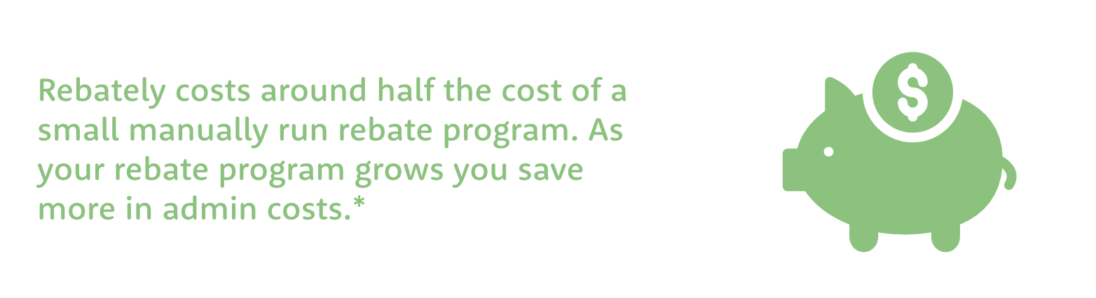 * Based on around $60,000 minimum budget with 250 rebate claims. Larger volume rebate programs save even more. Low volume, high rebate dollar value programs save a little less, depending on workload involved in approving claims. And that’s before we factor in fraud detection and significant setup savings for new programs.
